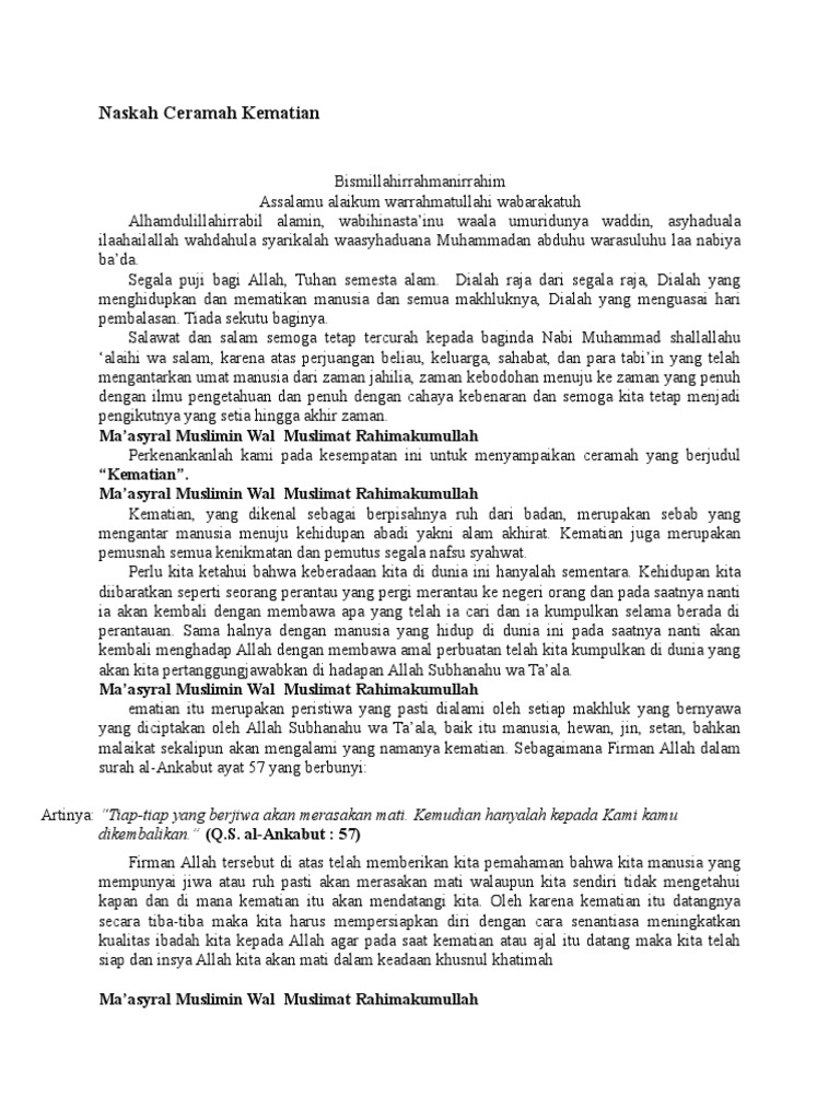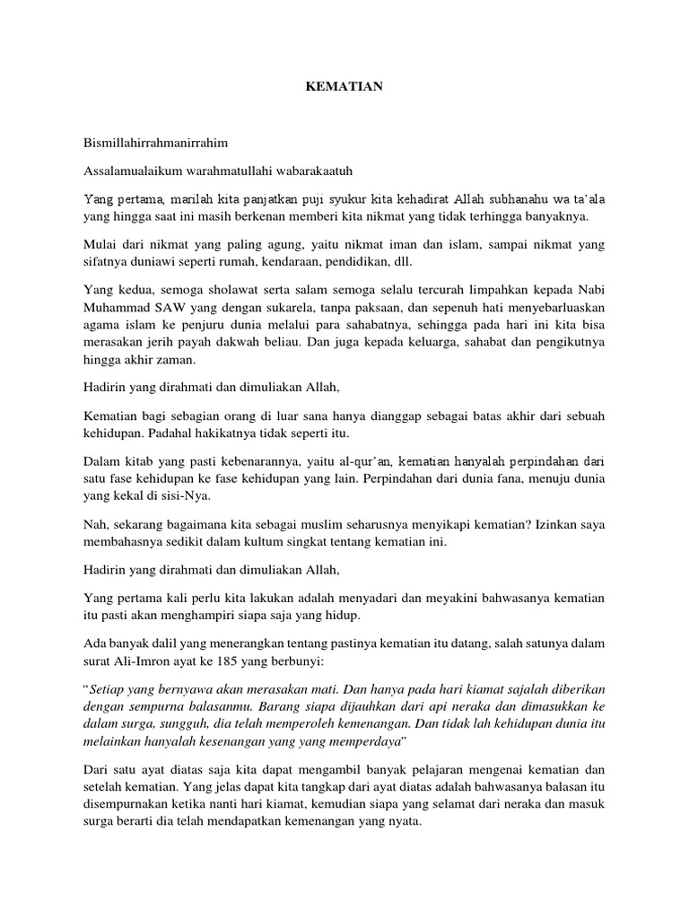 Contoh Ceramah Tentang Kematian Contoh Duri Cute766. Assalamu alaikum warrahmatullahi wabarakatuh.
