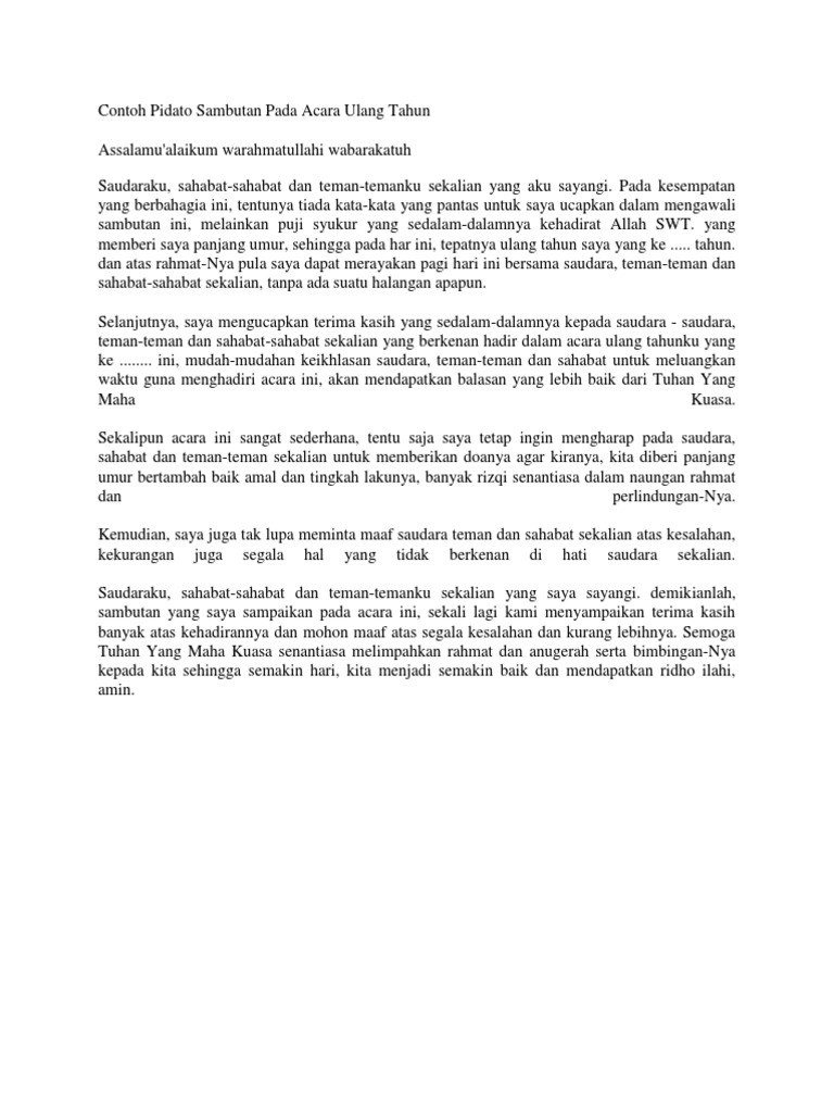 Contoh Pidato Sambutan Pada Acara Ulang Tahun Pdf