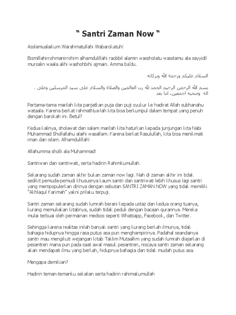 Jadilah Santri yang Berkomitmen Siaga Jiwa Raga Assalamualaykum Warahmatullah Wabarakatuh Alhamdulillah Alhamdulillahilladzi arsala rasulahu bilhuda wa dinil haq. Pidato atau biasa disebut sebagai ceramah. Home Unlabelled pidato ala santri gaul.