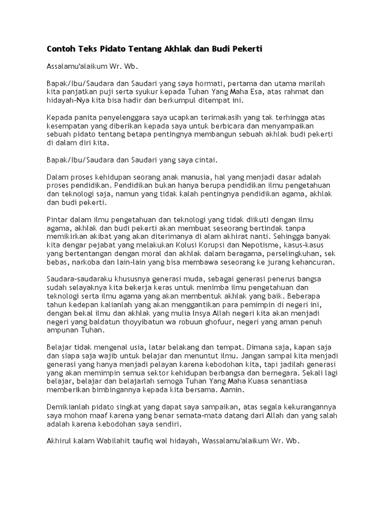 Contoh Teks Pidato Tentang Akhlak Dan Budi Pekerti Pdf