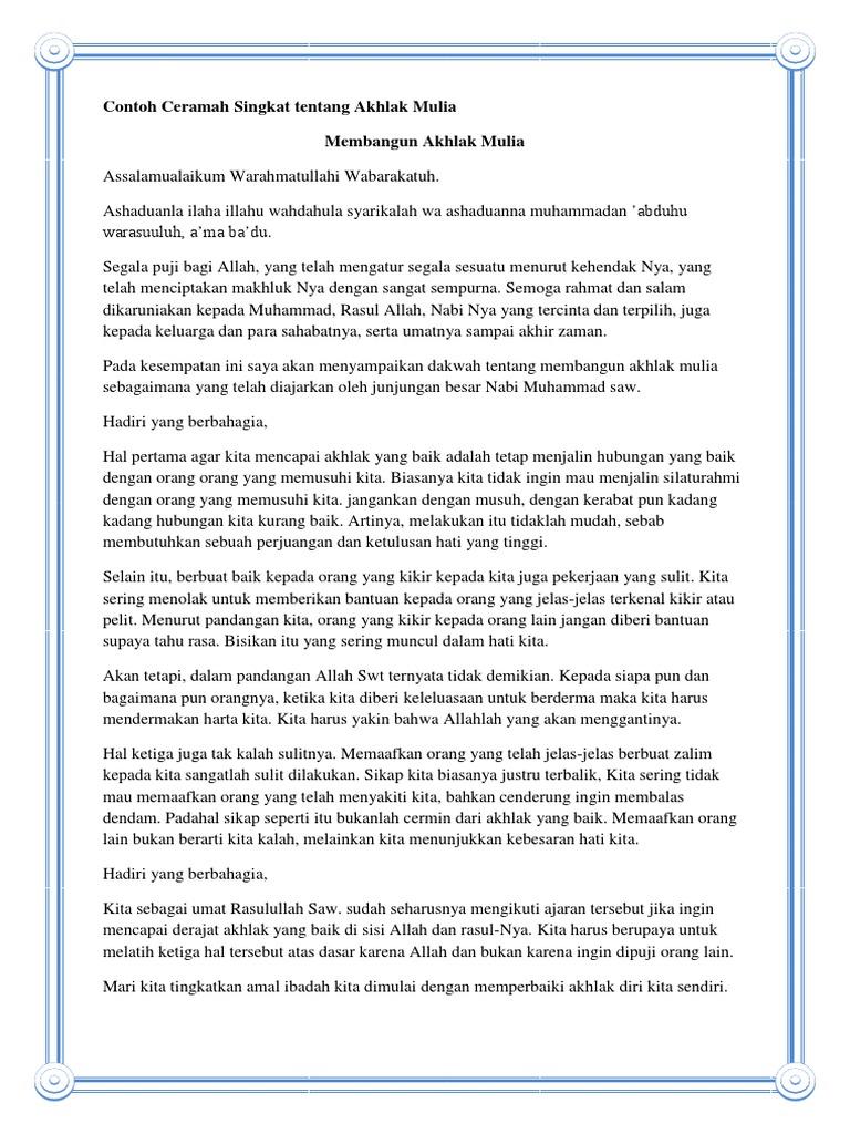 Contoh Ceramah Singkat Tentang Akhlak Mulia Pdf