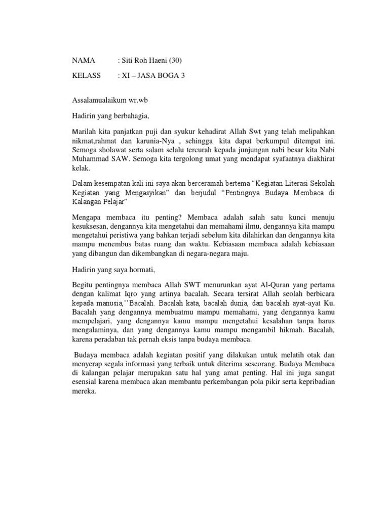 Contoh Teks Naskah Pidato Menumbuhkan Budaya Gemar Membaca Di Lingkungan Sekolah Bunyamincibalonggarut Blogspot Com