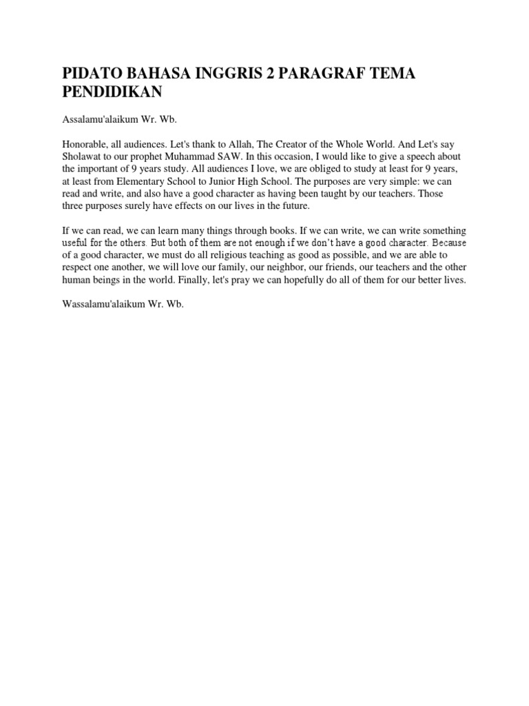 Doc Contoh Pidato Bahasa Inggris Tentang Pendidikan Di Hari Besar Pendidikan Muhammad Fajrin Academia Edu