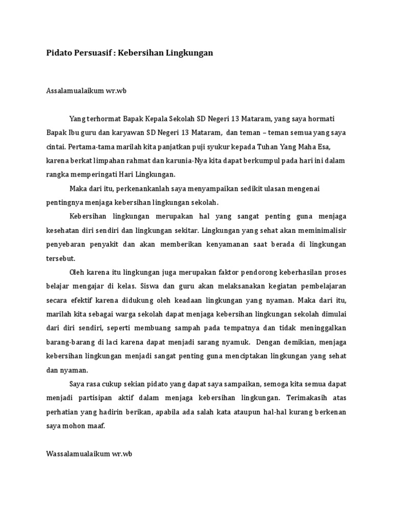 Contoh Pidato Persuasif Kebersihan Lingkungan Pdf
