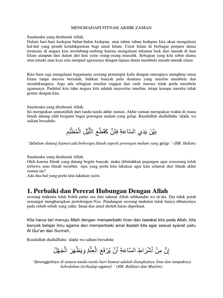 Menghadapi Fitnah Akhir Zaman Pdf Waktu Selesai Penistaan