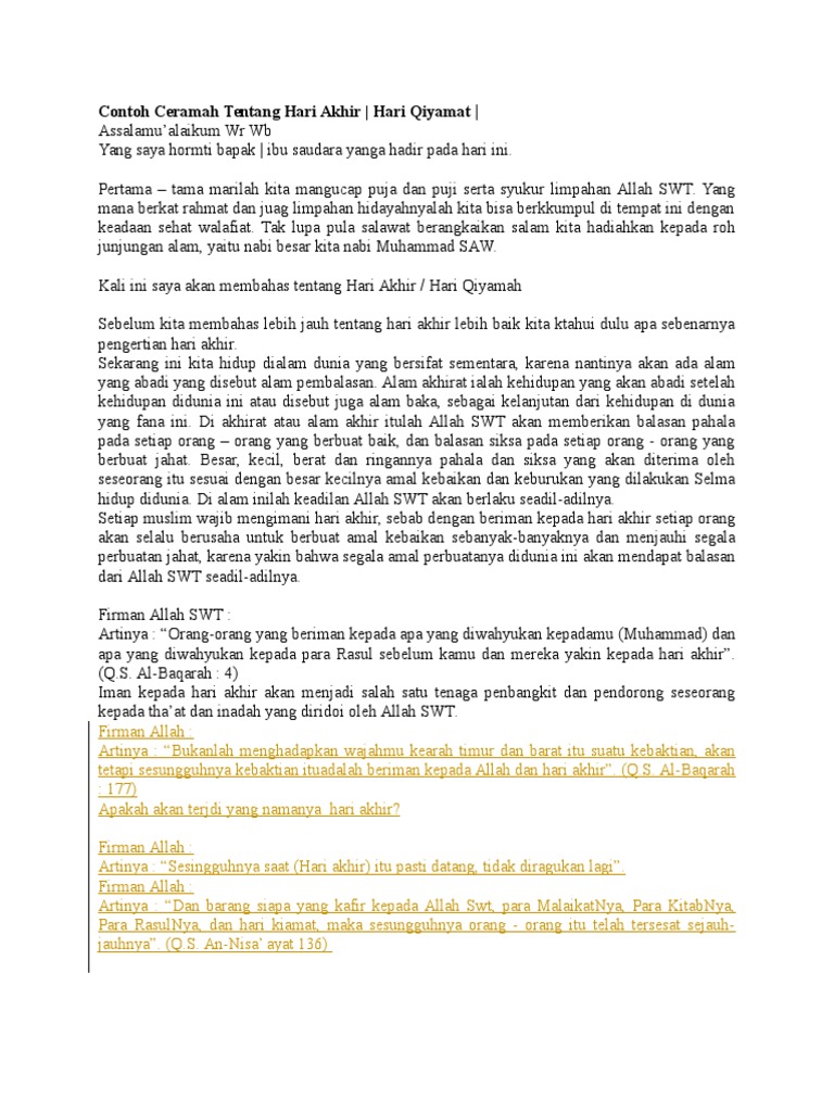 Contoh Ceramah Tentang Hari Akhir Pdf