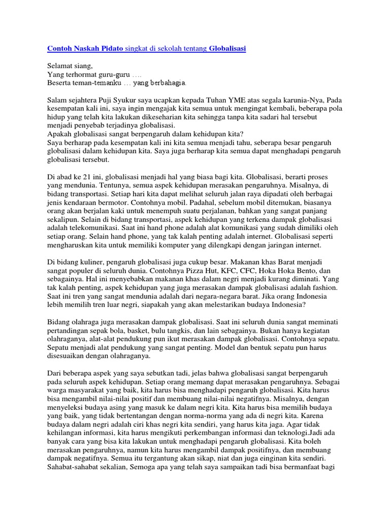 Contoh Naskah Pidato Singkat Di Sekolah Tentang Globalisasi Pdf