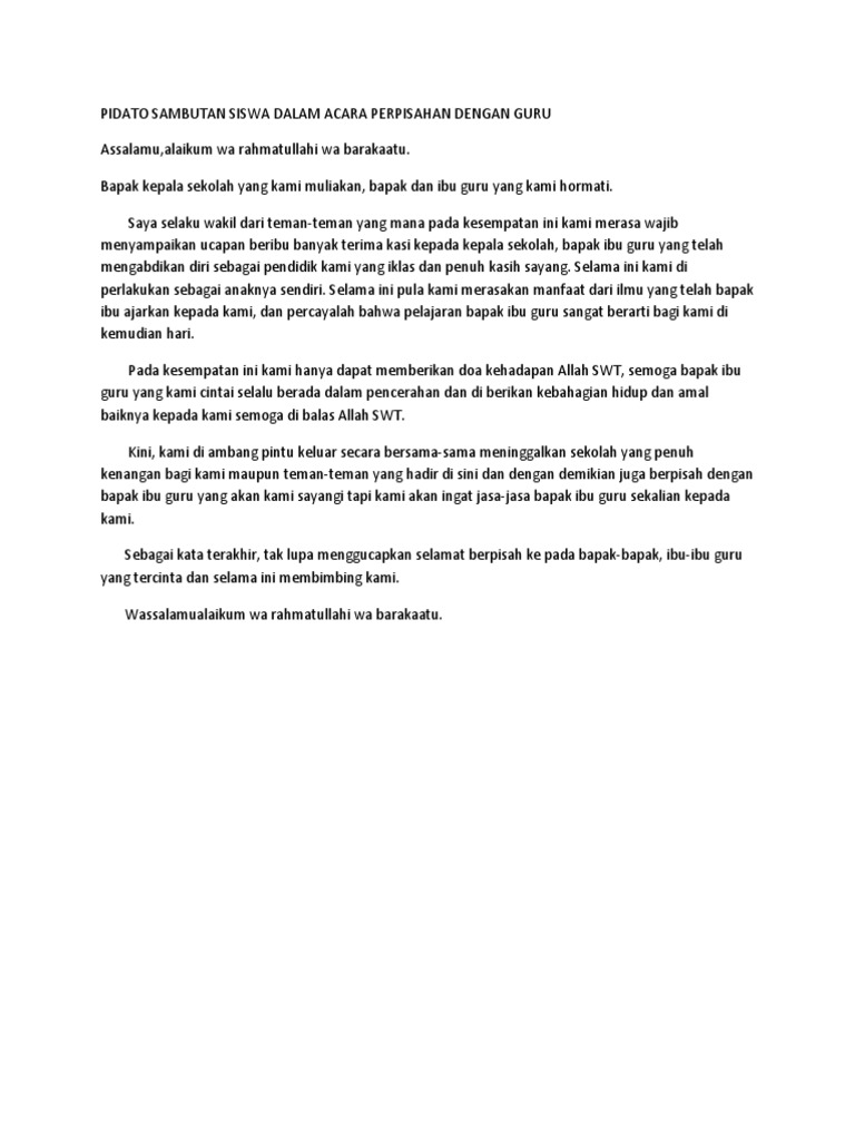 Pidato Sambutan Siswa Dalam Acara Perpisahan Dengan Guru Pdf