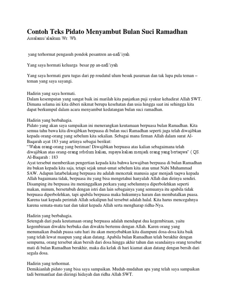 Contoh Teks Pidato Menyambut Bulan Suci Ramadhan Pdf