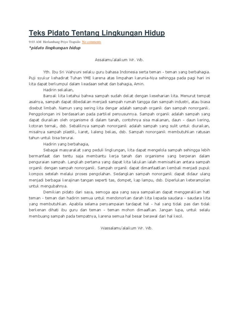 Teks Pidato Tentang Lingkungan Hidup Pdf