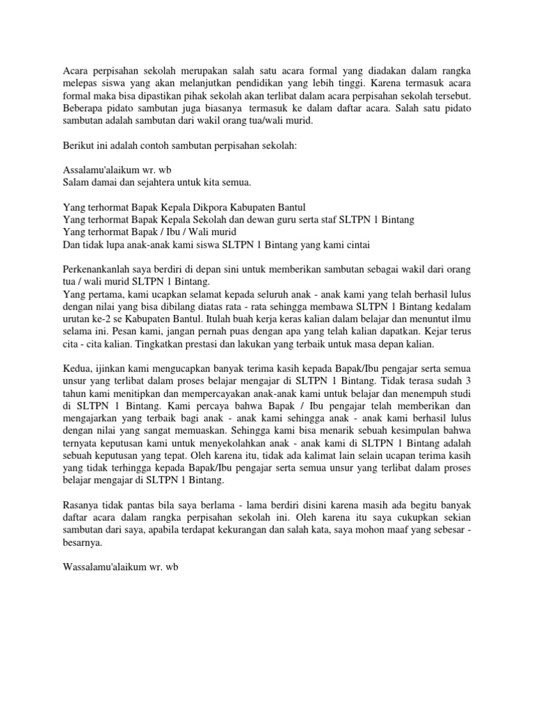 Pidato Walimurid Pada Perpisahan Sekolah Pdf