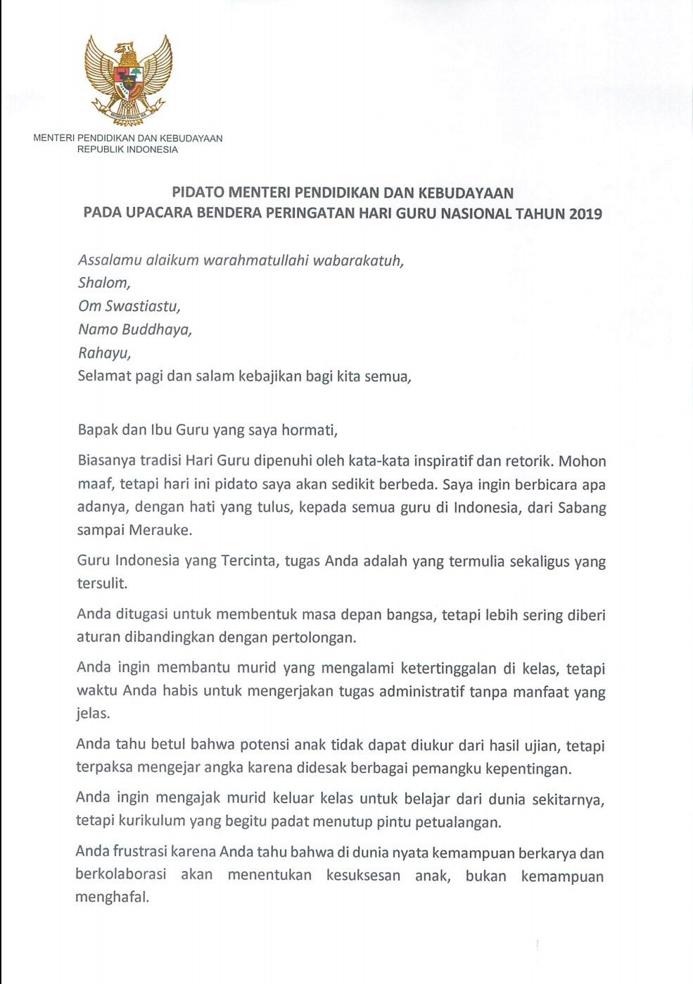 Ganjar Pranowo On Twitter Pidato Pak Mendikbud Ini 2 Lembar Isinya Langsung Pada Persoalan Kalau Dibacakan Dalam Upacara Pasti Cepat Selesai Simak Baik2 Isinya Apa Komentarmu Https T Co Cdj9ocl20d Twitter